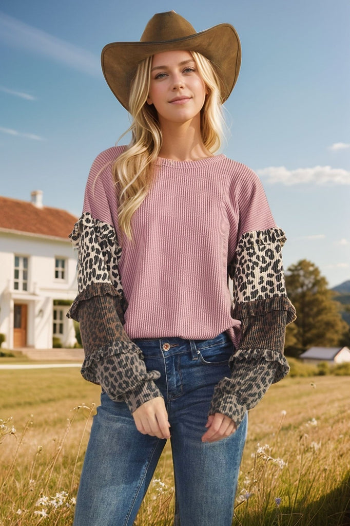 LONG SLEEVE WITH LAYERED RUFFLE ROUND NECK ANIMAL URBAN RIB